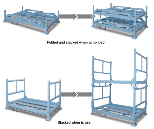 Advantages a. Capable of being stacked when in use, this tyre stillage achieves three-dimensional storage and makes full use of space. Used to replace shelf, it reduces overlapping investment. b. It will not occupy much space when at no load, because it can be folded and stacked. This brings convenience to the return journey and reduces logistics transportation cost. c. The quantity of tires this product can hold is fixed, so it facilitates inventory counting. d. Stored in their working state, the tires are free from the damage caused by squeezing. e. With strong mobility, our product is not subjected to the limitations of the site. New triangle locating stacking mechanism makes stacking more solid and stable Application Description a. This foldable and stackable stillage is suitable for the storage and transport of car tire, truck tires, and other large tires. b. It is one of the indispensable logistics apparatus in the production supply chain. c. It is applicable to the logistics handling from the workshop production line to the transit warehouse and from the warehouse to the assembly line.